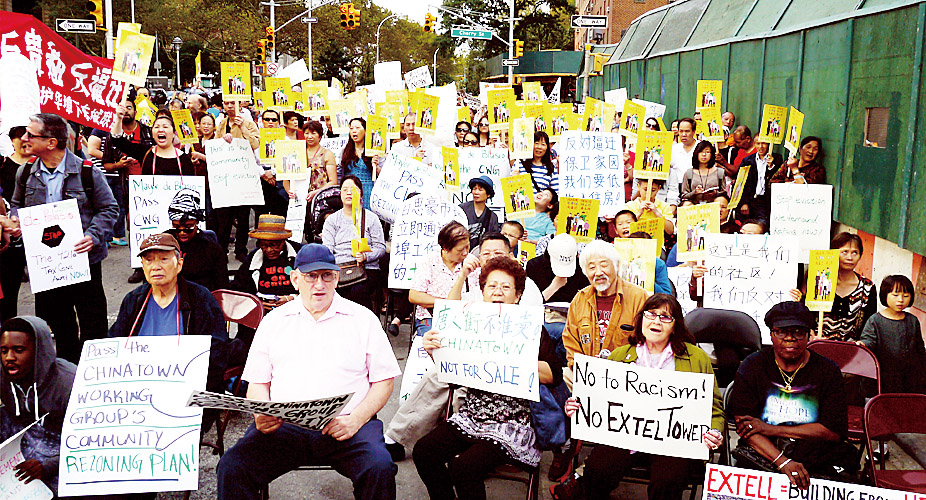 On Friday, residents, workers, local business owners, students and concerned community members-including children and elderly-of the Lower East Side and Chinatown rallied at the site of the controversial 80-story luxury tower being built by Extell. Hundreds of community members and supporters protested the building of a luxury building in their backyard and demanding Mayor de Blasio adopt the Chinatown Working Group plan to protect the Chinatown and Lower East Side.