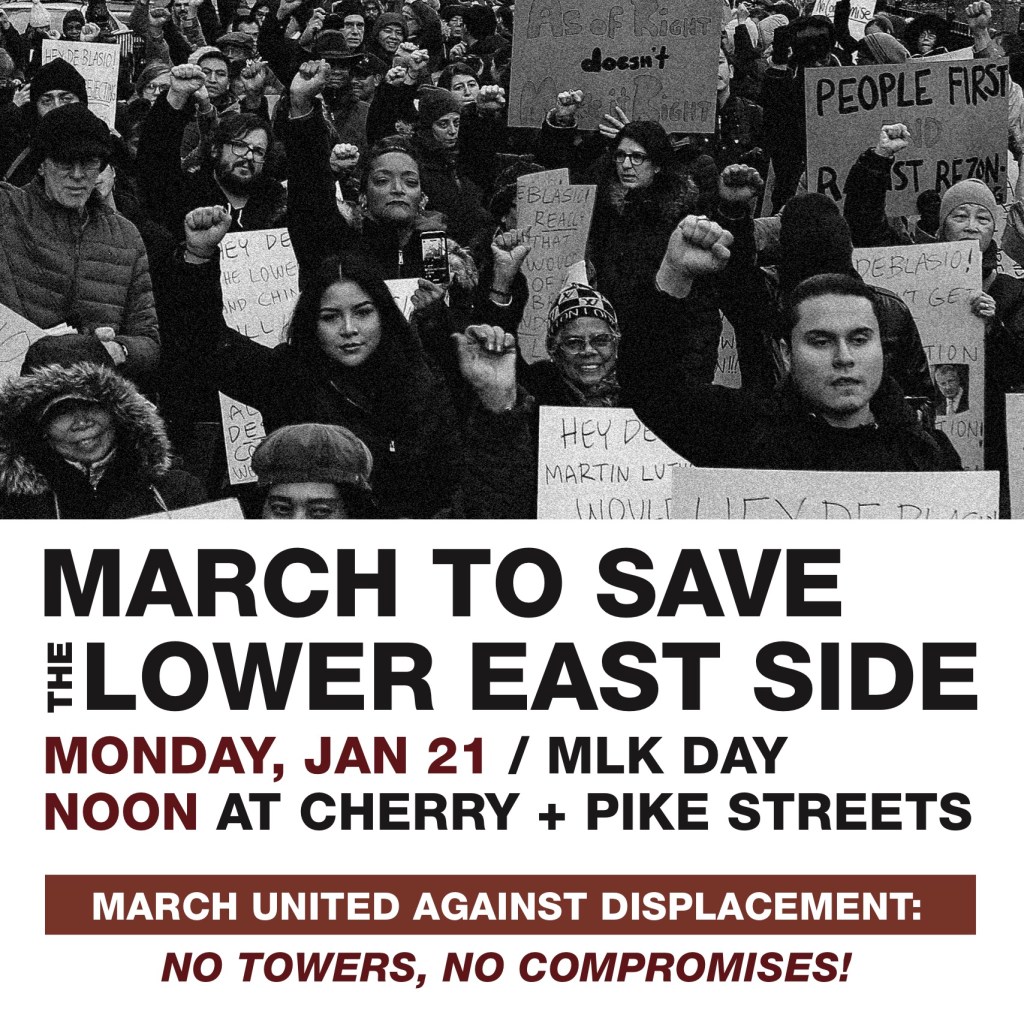 NOW is the moment to build up the community power. Join us and march to save the Lower East Side from de Blasio’s displacement agenda.