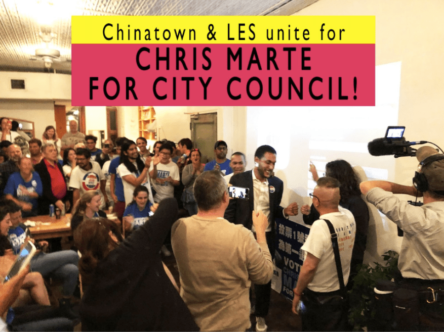 This City Council election, the Chinatown and the Lower East Side communities have spoken: Chris Marte is taking a decisive lead in the first choice votes, far exceeding all the other candidates, and is expected to win after the rank choice votes are counted.